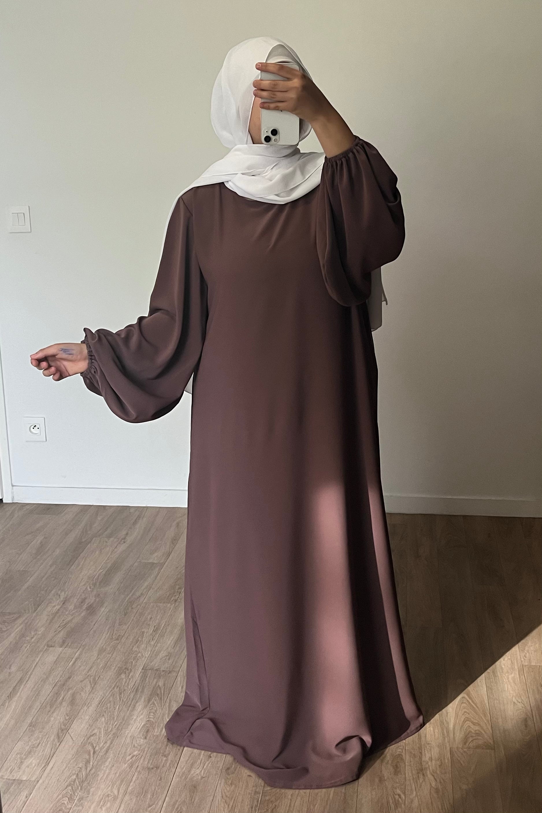 Abaya manches bouffantes en Soie de Médine MARRON