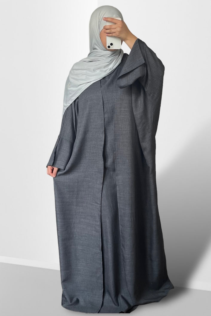Ensemble Abaya Kimono effet Lin Soheila GRIS FONCE