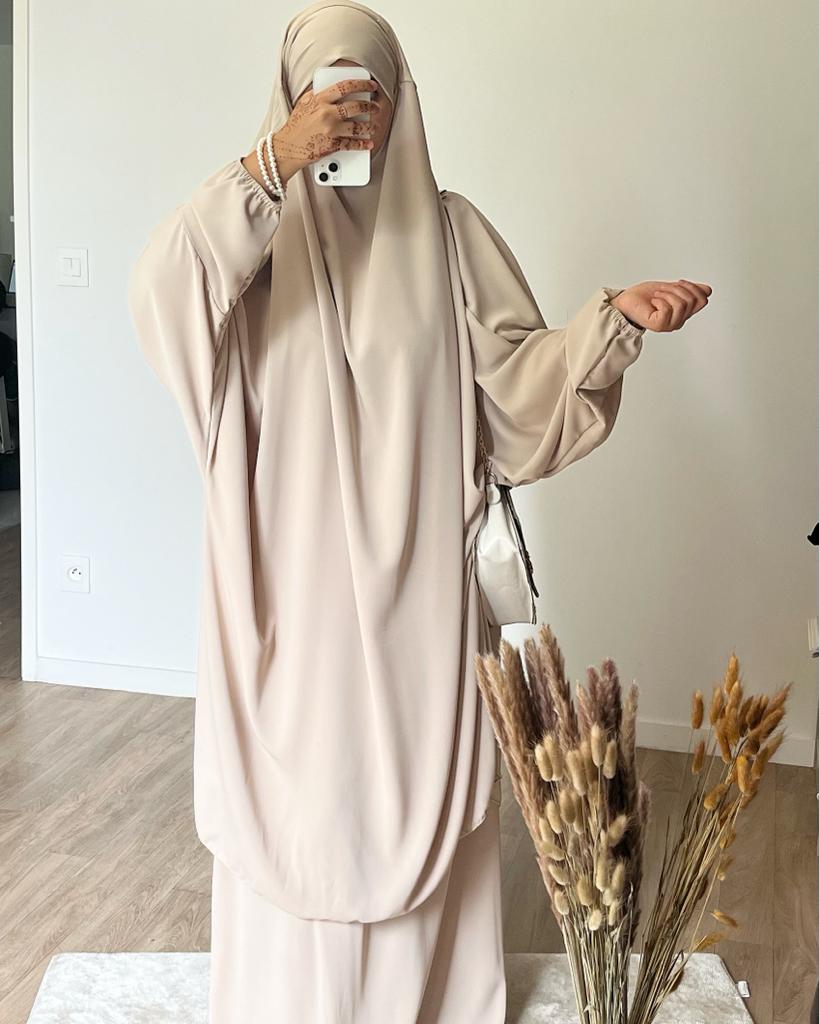 JILBAB EN SOIE DE MEDINE BEIGE